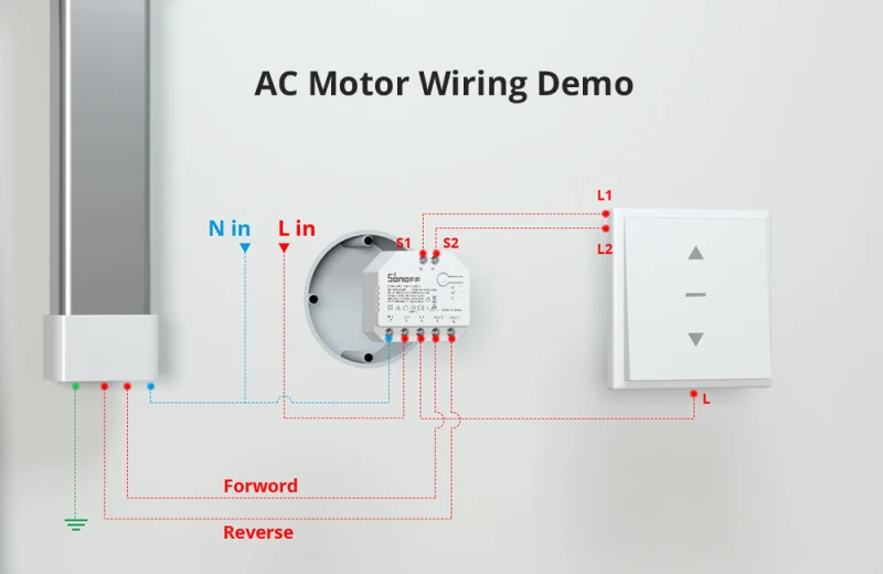 DUALR3 Lite is applicable to four wires(GND, neutral, Forward, and Reverse) AC motors, like tubular motors