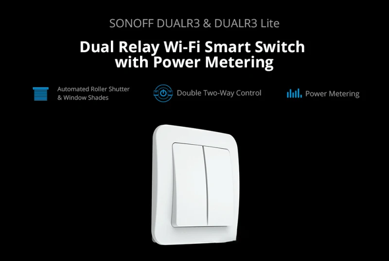 SONOFF DUALR3 Lite takes your home to the next level.DUALR3 Lite is a flush-mounted Wi-Fi smart dual relay switch module that is installed behind any standard switch to transfer it into a smart switch for wireless remote control with mobile devices or voice command. Unifying your home appliances into an integrated wireless network to make them communicate with one another which is convenient for you to manage and control, including lights, home appliances and motorized facilities like roller shutters, window shades, blinds, awning, etc.