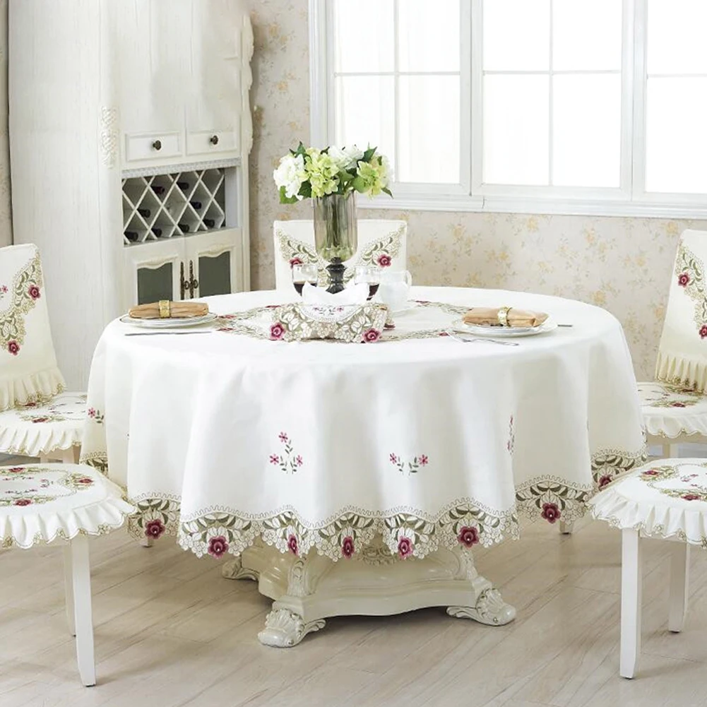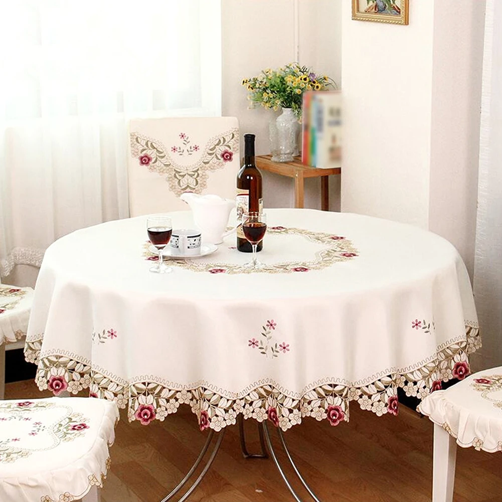 Розовая Круглая скатерть, бежевые вышитые скатерти, покрытие, товары для дома, украшение стола для кухни, защитная клееная ткань
