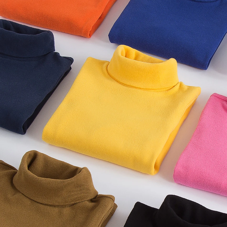 Детский джемпер с высоким воротником хлопковая футболка с длинными рукавами для мальчиков и девочек Корейский топ с высоким воротником на осень и зиму
