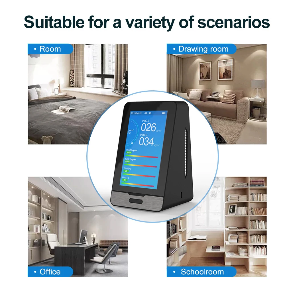 Этот детектор подходит для контроля качества воздуха в помещении и на улице, Мути-энворнментального контроля качества воздуха для мебели, украшений, автомобилей и т. д.
