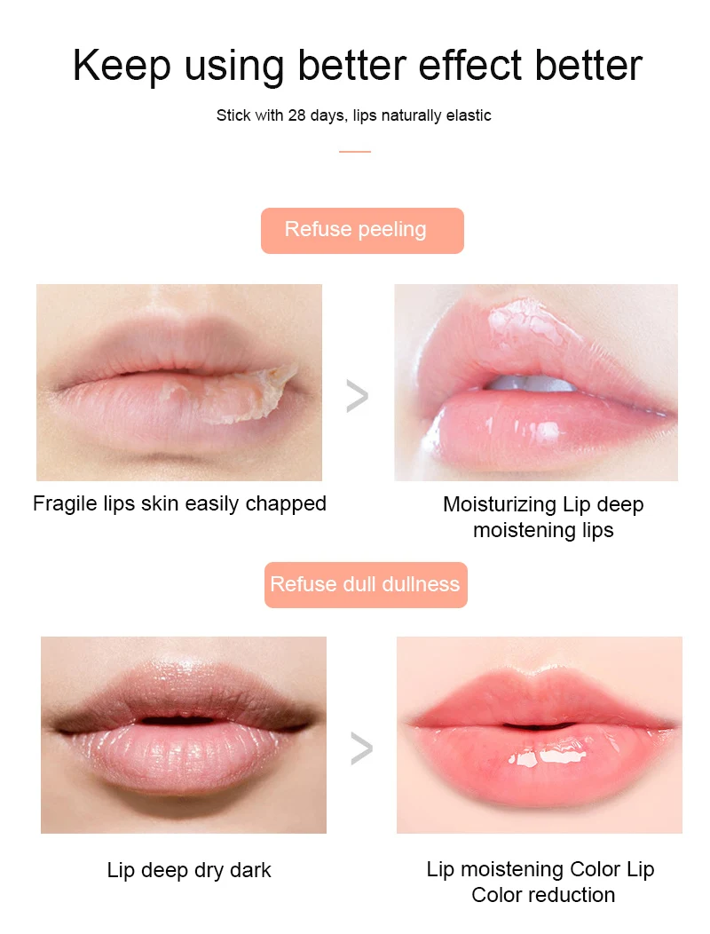 Улучшает тусклость губ и темноту вокруг губ и осветляет линии губ.
