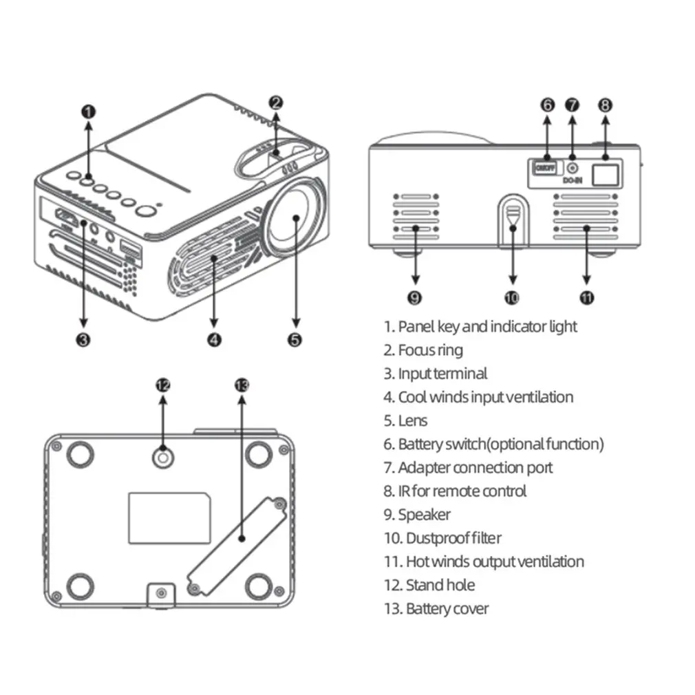 1. Компактный корпус, может проектировать экран 20-80 дюймов, смотреть гигантский экран в любое время.