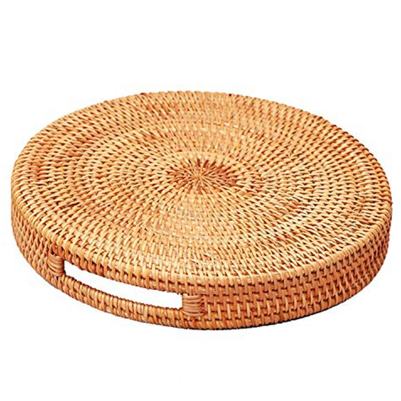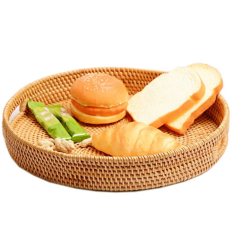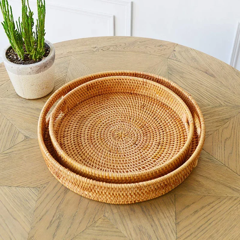 Ротанговый ручной круглый стол с высокой стенкой разделительный лоток для хранения еды тарелка с ручками