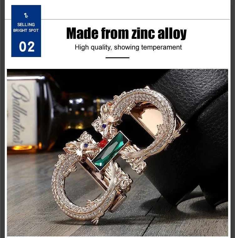 Бренд: delivery Подходит: для мужчин Название: пояс Пряжка ремня: Автоматическая пряжка ремня Материал пряжки ремня: цинковый сплав, стразы Цвет: черный + золотой, серебристый Материал: натуральная кожа Применение: молодость, молодость, средний возраст Стиль: деловой/Повседневный Тип: Модный/простой Процесс: мягкий Длина: 105-130 см