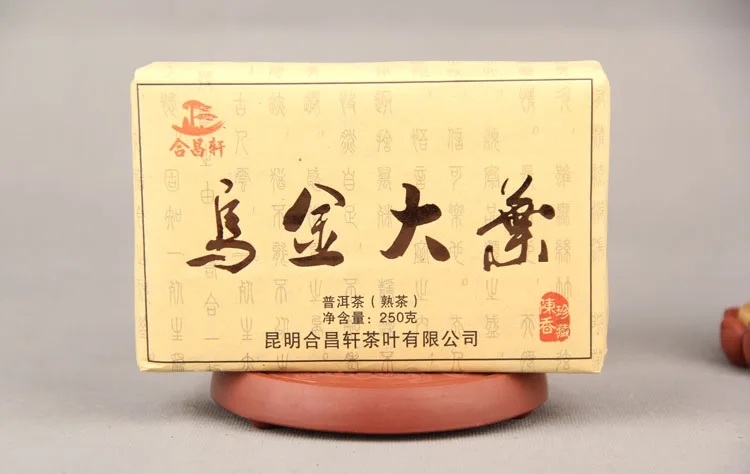 The raw material is Yunnan Menghai big-leaf sun-dried green hair tea. The strips are compact, uniform in thickness, and brown in color; the aroma is old, the soup is dark red and bright, the taste is mellow, the taste is full and three-dimensional, the tea is thick and slippery, and the liver color at the bottom of the leaf is good It is tender and even, the leaf bottom is vigorous, low-fermented cooked bricks, and the heap is clear. It is really the successful work of Boyou's cooked and popular products. The shape of the tea is tight and even.
