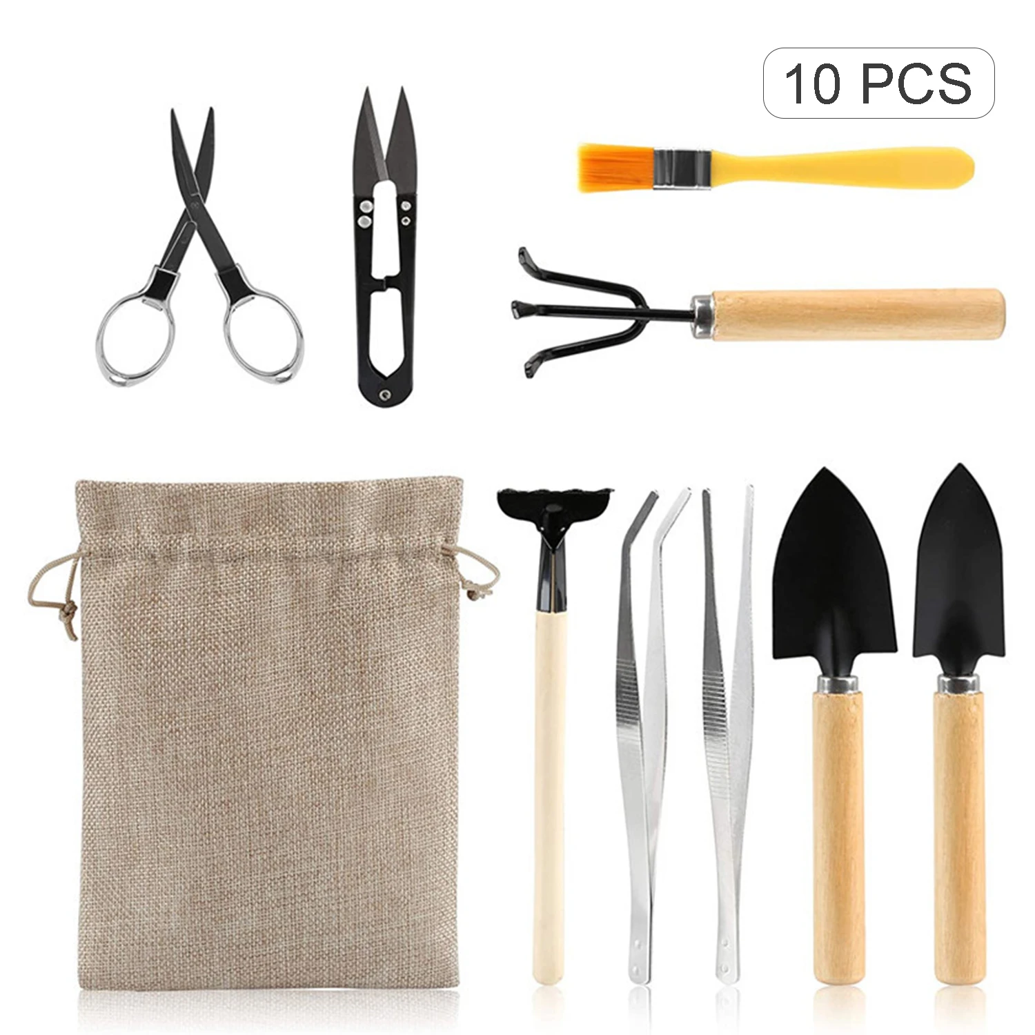Набор инструментов для садовой посадки из 10 штук решит ваши проблемы с пересаживанием, рыхлением почвы, пересаживанием, поливом, обрезкой, очисткой и т. д. В комплект входит 1 складной ножницы, 1 щетка, 2 пинцета, 1 мини-грабли, 2 лопаты, 1 вилка для прополки, 1 триммер для листьев, 1 сумка для хранения.