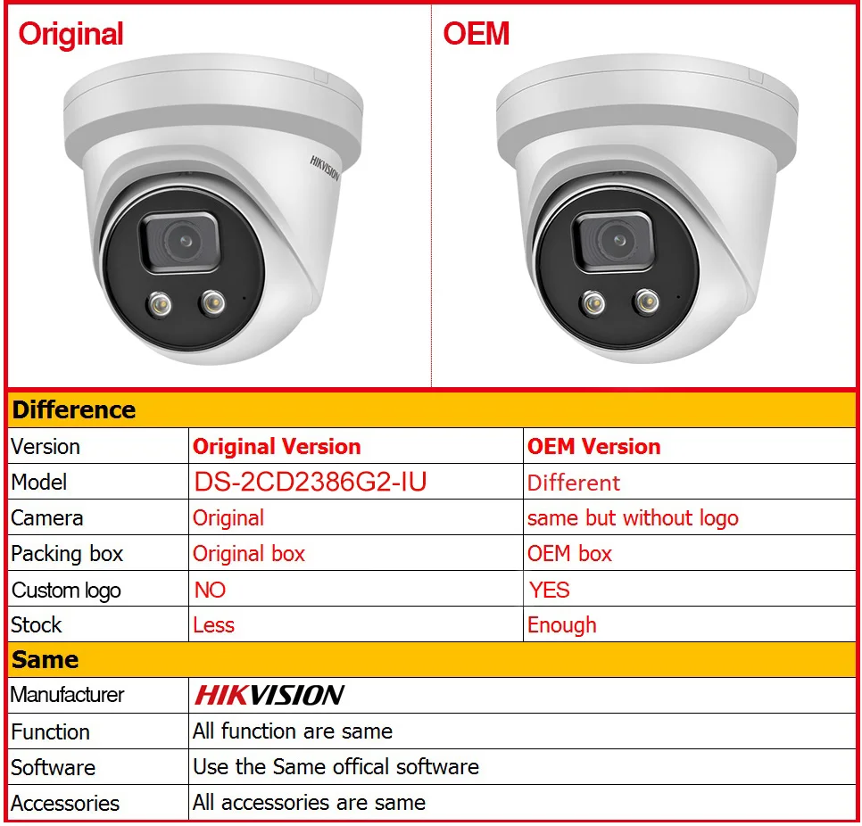 "OEM Version" means the OEM model,It's OEM fromDS-2CD2386G2-I .