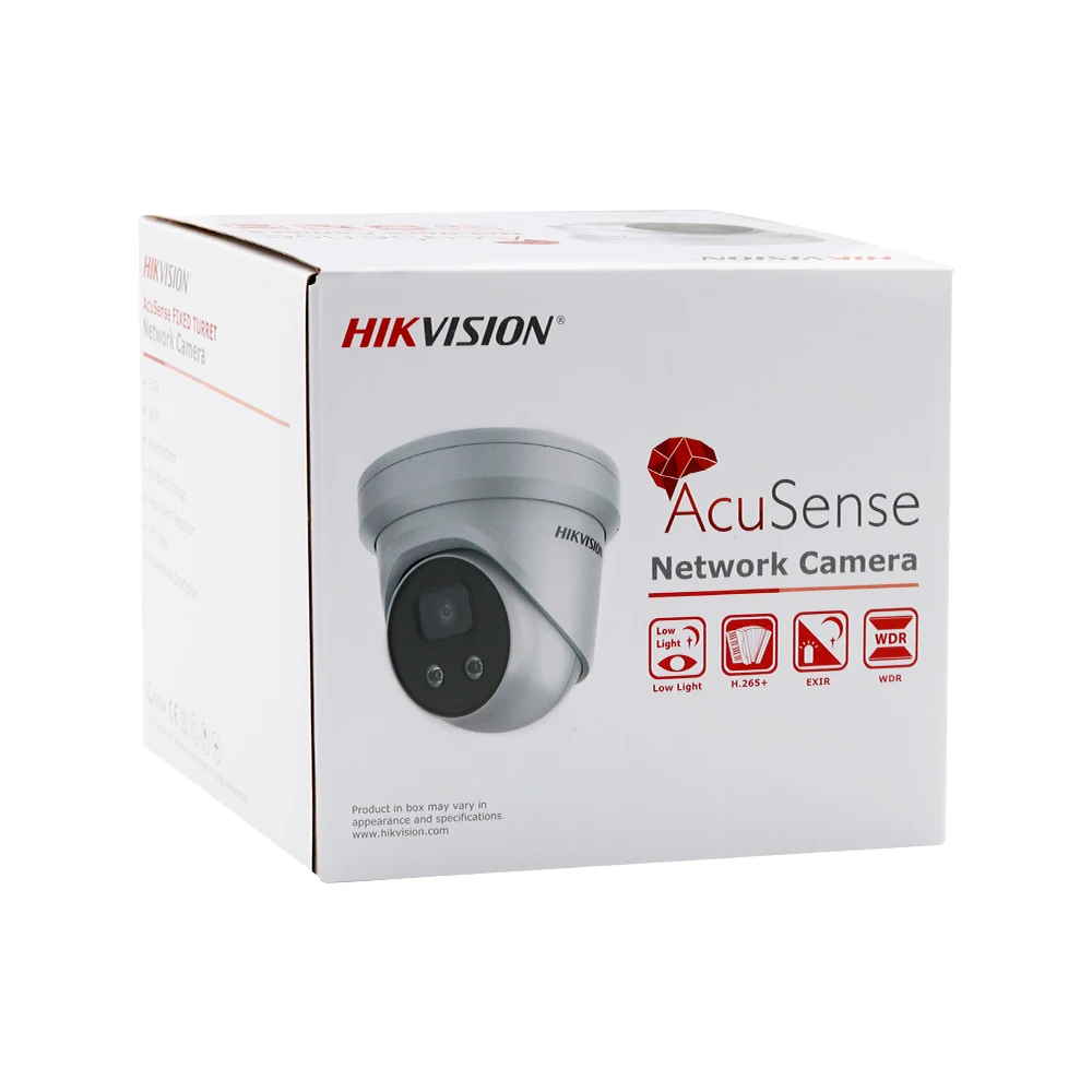 CameraImage Sensor1/1.8" Progressive Scan CMOSMin. IlluminationColor: 0.003 Lux @ (F1.6, AGC ON), 0 Lux with IRShutter Speed1/3 s to 1/100,000 sSlow Shutter128 MBDay &NightProgressiveAngle AdjustmentAuto/Manual 1/3 s–1/100,000 sWDR0.004 Lux@F1.0LensLensFixed lens, 2.8/4/6 mmApertureF1.6FOV2.8 mm, horizontal FOV: 102° , vertical FOV: 55° , diagonal FOV: 120° 4 mm,horizontal FOV: 87.1° , vertical FOV: 47.4° , diagonal FOV: 101.8° 6 mm,2.8 mm: F1.0horizontal FOV: 50.8° , vertical FOV: 27.6° , diagonal FOV: 60°Field of View2.8 mm: 96° (Horizontal) × 51° (Vertical) × 115° (Diagonal)3.6 mm: 81° (Horizontal) × 44° (Vertical) × 97° (Diagonal)Lens MountM16IlluminatorIR RangeUp to 30 mWavelength850 nmVideoMax. Resolution3840 × 2160Main Stream50Hz: 20fps (3840 × 2160, 3072 × 1728), 25fps (2688 × 1520,1920 × 1080, 1280 × 720) 60Hz: 20fps (3840 × 2160, 3072 × 1728), 30fps (2688 × 1520,1920 × 1080, 1280 × 720)Sub Stream50Hz: 25fps (640 × 480, 640 × 360, 320 × 240) 60Hz: 30fps (640 × 480, 640 × 360, 320 × 240)Third Stream50Hz: 25fps (1280 × 720, 640 × 480, 640 × 360, 320 × 240) 60Hz: 30fps (1280 × 720, 640 × 480, 640 × 360, 320 × 240)Video CompressionMain stream: H.265+/H.264+/H.265/H.264 Sub-stream: H.265/H.264/MJPEG Third stream: H.265/H.264H.264 TypeBaseline Profile/Main Profile/High ProfileH.265 TypeMain ProfileVideo Bit Rate32 Kbps to 16 MbpsScalable Video Coding (SVC)H.264 and H.265 encoding supportAudioAudio CompressionG.711/G.722.1/G.726/MP2L2/PCM/MP3Audio Bit Rate64Kbps(G.711)/16Kbps(G.722.1)/16Kbps(G.726)/32-192Kbps(MP2L2)/8Kbps-320Kbps(MP3)Environment Noise FilteringYesAudio Sampling Rate8 kHz/16 kHz/32 kHz/44.1 kHz/48 kHzSmart Feature-SetBasic EventMotion detection, video tampering alarm, exception (network disconnected, IP address conflict, illegal login, HDD full, HDD error), scene change detectionPremier ProtectionLine crossing detection, intrusion detection, region entrance detection, region exiting detection (Human&Vehicle classification)Region Of Interest1 fixed region for main stream, sub-stream and third streamLinkage MethodUpload to FTP/NAS/memory card, notify surveillance center, send email, alarm output, audible warning, trigger captureImageImage EnhancementBLC, HLC, 3D DNRImage SettingSaturation, brightness, contrast, sharpness, AGC and white balance adjustable by client software or web browserDay/Night SwitchDay/Night/Auto/ScheduleNetworkNetwork StoragemicroSD/SDHC/SDXC card (256 GB), local storage and NAS (NFS,SMB/CIFS), ANRProtocolsTCP/IP, ICMP, HTTP, HTTPS, FTP, DHCP, DNS, DDNS, RTP, RTSP, PPPoE, NTP, UPnP, SMTP, SNMP, IGMP, 802.1X, QoS, IPv6, UDP, Bonjour, SSL/TLSAPIONVIF (PROFILE S, PROFILE G), ISAPI, SDKSecurityPassword protection, complicated password, HTTPS encryption, 802.1X authentication (EAP-MD5), watermark, IP address filter, basic and digest authentication for HTTP/HTTPS, WSSE and digest authentication for ONVIF, TLS1.2Simultaneous Live ViewUp to 6 channelsUser/HostUp to 32 users, 3 levels: administrator, operator and userClientiVMS-4200, Hik-Connect, Hik-CentralWeb BrowserPlug-in required live view: IE8+, Chrome 41.0-44, Firefox30.0-51, Safari8.0-11 Plug-in free live view: Chrome 57.0+, Firefox 52.0+InterfaceCommunication Interface1 RJ45 10M/100M self-adaptive Ethernet portAudioBuilt-in microphoneOn-Board StorageBuilt-in micro SD slot, up to 256 GBApprovalEMCFCC (47 CFR Part 15, Subpart B); CE-EMC (EN 55032: 2015, EN 61000-3-2: 2014, EN 61000-3-3: 2013, EN 50130-4: 2011 +A1: 2014); RCM (AS/NZS CISPR 32: 2015); IC (ICES-003: Issue 6, 2016); KC (KN 32: 2015, KN 35: 2015)SafetyUL (UL 60950-1); CB (IEC 60950-1:2005 + Am 1:2009 + Am 2:2013); CE-LVD (EN 60950-1:2005 + Am 1:2009 + Am 2:2013); BIS (IS 13252(Part 1):2010+A1:2013+A2:2015); LOA (IEC/EN 60950-1)ChemistryCE-RoHS (2011/65/EU); WEEE (2012/19/EU); Reach (Regulation (EC) No 1907/2006)ProtectionIngress protection: IP66 (IEC 60529-2013), IK10(IEC 62262:2002)GeneralWeb Client Language32 languages English, Russian, Estonian, Bulgarian, Hungarian, Greek, German, Italian, Czech, Slovak, French, Polish, Dutch, Portuguese, Spanish, Romanian, Danish, Swedish, Norwegian, Finnish, Croatian, Slovenian, Serbian, Turkish, Korean, Traditional Chinese, Thai, Vietnamese, Japanese, Latvian, Lithuanian, Portuguese (Brazil)General FunctionAnti-flicker, three streams, heartbeat, mirror, privacy masks, pixel counterResetReset via reset button on camera body, web browser and client softwareStartup And Operating-30 °C to 60 °C (-22 °F to 140 °F), humidity 95% or less (non-condensing)ConditionsStorage Conditions -30 °C to 60 °C (-22 °F to 140 °F), humidity 95% or less (non-condensing)Power Supply12 VDC ± 25%, Φ 5.5 mm coaxial power plug; reverse polarity protection; PoE (802.3af, class 3)Power Consumption And12 VDC, 0.48 A, max. 5.8 W; PoE (802.3af, 36 V to 57 V), 0.19 A to 0.12 A, max. 6.8CurrentWDimensionsCamera: Φ 138.3 × 126.3 mm (Φ 5.4" × 5") With package: 170 × 170 × 150 mm (7" × 7" × 5.9")WeightCamera: approx. 740 g (1.6 lb.) With package: approx. 1060 g (2.3 lb.)