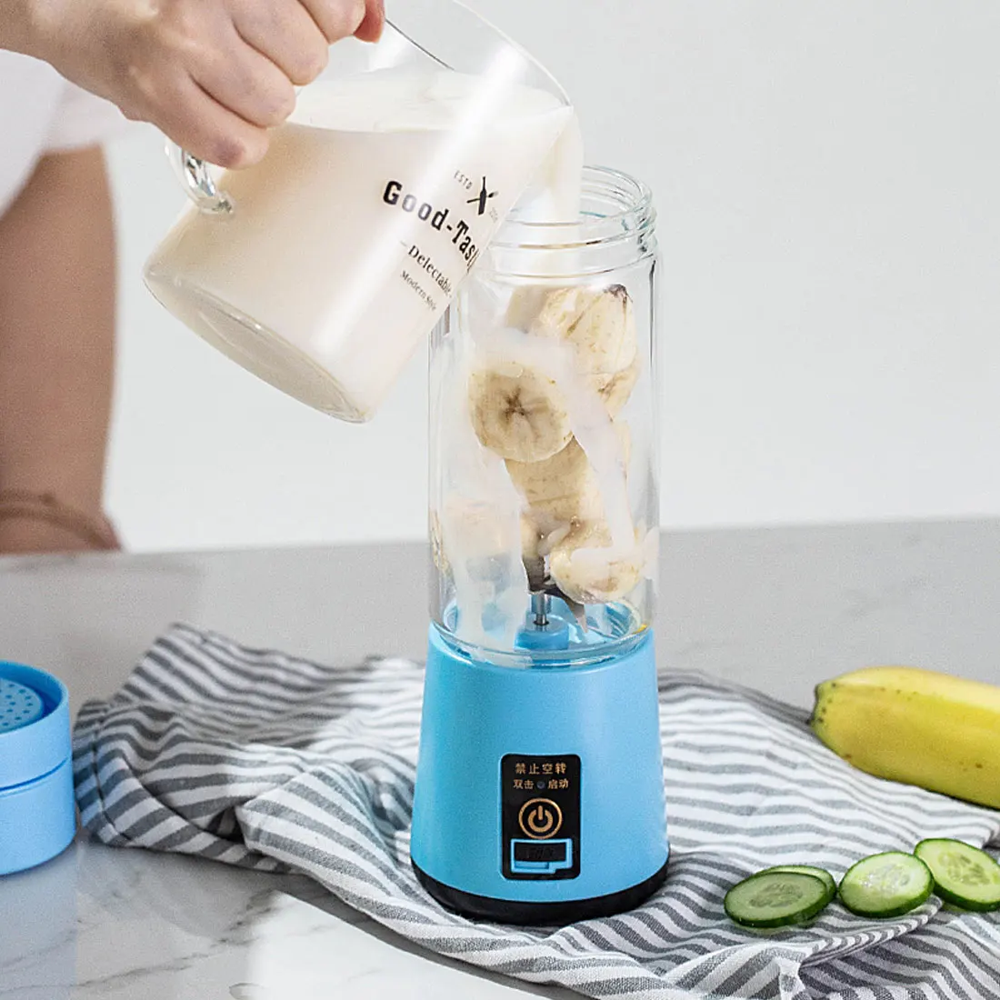Вопрос и ответ: (1) Вопрос: Можно ли заряжать аккумуляторы напряжением 220? Ответ: Да, наш блендер может быть заряжен напряжением 220. (2) Вопрос: Как стирать блендер? Ответ: Налейте половину стакана воды в чашку, включите блендер примерно на 5 секунд, затем вылейте грязную воду. Описание характеристики: 1. Маленький размер, портативный и многоразовый. 2. Сделайте чашку сока в течение 1 минуты на высокой скорости, Смешайте различные виды фруктов и овощей. 3. Здоровые и экологически чистые. 4. Многоразовые, когда заряжается полностью и легко заряжается, когда аккумулятор используется. Достаточно безопасно из-за двойной защиты на выключателе питания. Инструкции: шаги 1: Вымойте фрукты и нарежьте их на мелкие кусочки. Шаги 2: Поставьте фрукты, около 60% тела чашки, добавьте 20% воды или молока, сделайте общее количество около 80% емкости чашки. Шаги 3: затяните колпачок чашки, Инвертируйте корпус чашки, запустите переключатель и т. д. после того, как двигатель вращается, поместите его в положение. При работе Слегка встряхните чашку сока, эффект сока лучше. Шаги 4: после того как соковыжималка закончена, выключите выключатель питания и Отвинтите крышку чашки для питья. Если слишком много фруктовых остатков, пожалуйста, используйте фильтр перед питьем. Спецификация: Основной Материал: АБС-пластик Материал лезвия: нержавеющая сталь объем чашки: 380 мл Вес: 510 г Цвет: розовый, фиолетовый, синий, зеленый частота сока: 90 с каждый раз, можно сжать 10 раз. Посылка включает в себя: 1 * чашка для соковыжималки (другие демонстрационные аксессуары на картинке не включены.) Примечание: 1. Допускается погрешность в 1-2 мм из-за ручного измерения. 2. Из-за разницы между различными мониторами, есть различия в цвете, пожалуйста, выберите реальный продукт в качестве стандарта.
