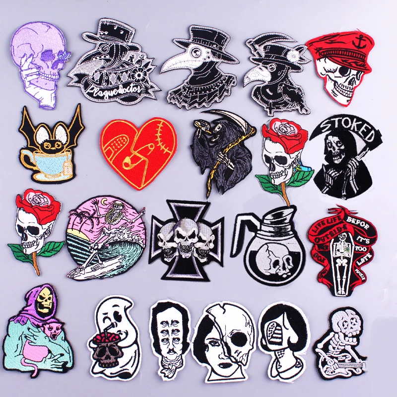 Пластыри для одежды с железной вышивкой для одежды, наклейки для одежды, панковские накладки с черепом для футболки DIY