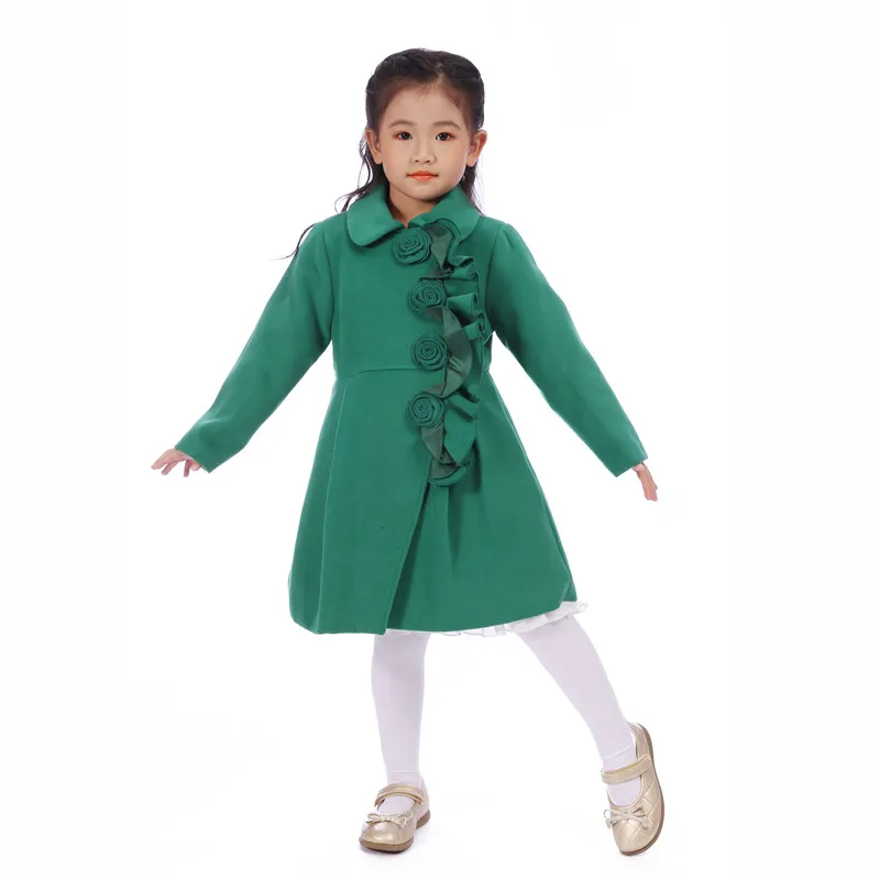 Осенне-зимнее теплое зеленое пальто для девочек; Весенняя одежда; Верхняя одежда для детей; Детские куртки; Повседневное пальто с зеленым цветком для девочек