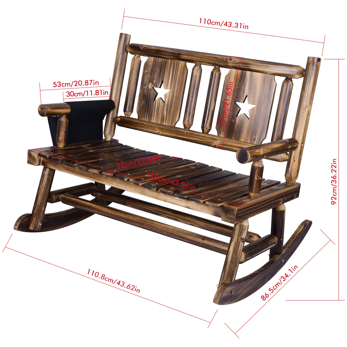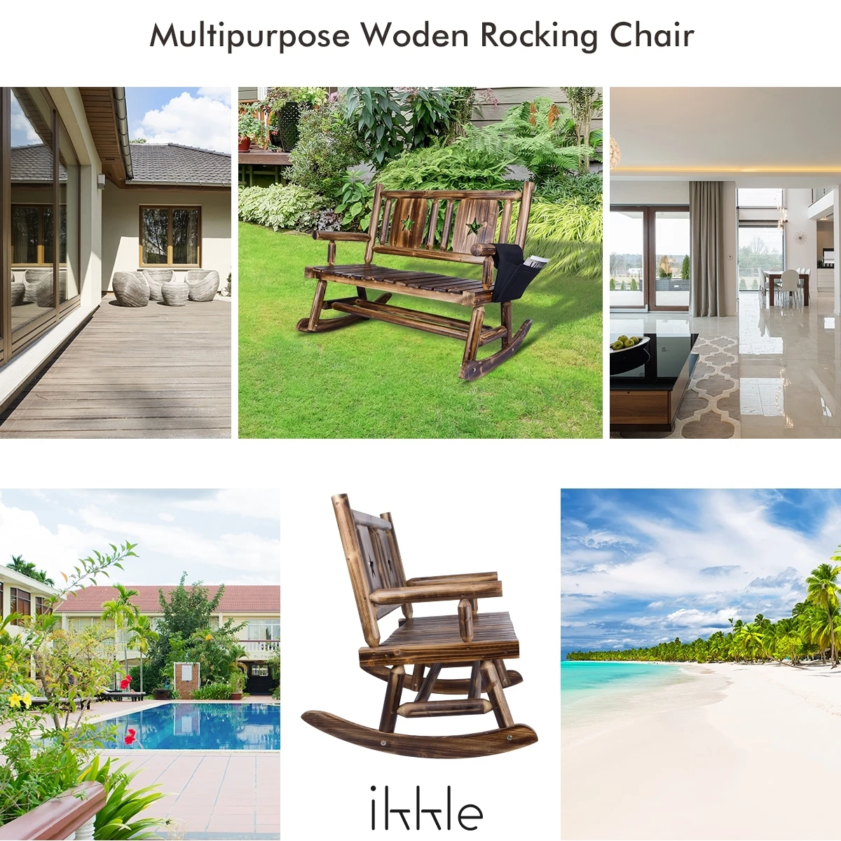 Features: 1.Wooden Patio Furniture - 100% Solid Wood Construction, strong and uneasily broken, warped, split, corrosion resistant. High strength. Stronger and firmer than normal chair 2. Ergonomic Design Rocks the Summer Away : Carefully design and measure whether in the seat, backrest, armrests or any other place to make the outdoor patio furniture more stable, the arc shape of the bottom rocking chair is ergonomic, does not shake excessively cause danger, comfortably rock the hot summer away 3. Fade-resistant/ Waterproof Lounge Chair for Indoor & Outdoor : Processed with smooth finish, suitable for all kinds of weather, no decay at all, the surface does not harm human skin, fade-resistant for use many years around 4.Three hollow stars decoration 100% fits for garden, decorate with vivid. Xcsource update the design with convenient storage bag hung on the armrest for storing books or phone 5.Easy to assemble- Patio rocking chair come with every part and manual included, seatting on the rocker quietly read books, cozily taste a cup of coffee at patio, courtyard, deck or balcony Specifications: Material:Solid wood Color:Wood Size: As pictures show Pakcage include: 1 x Rocking Chair For Double