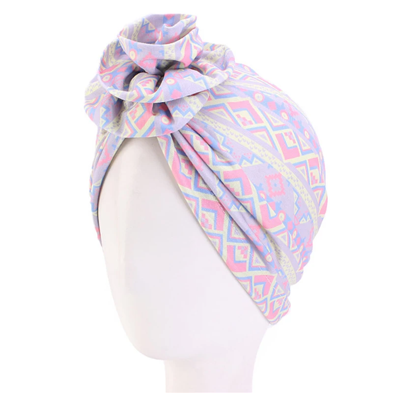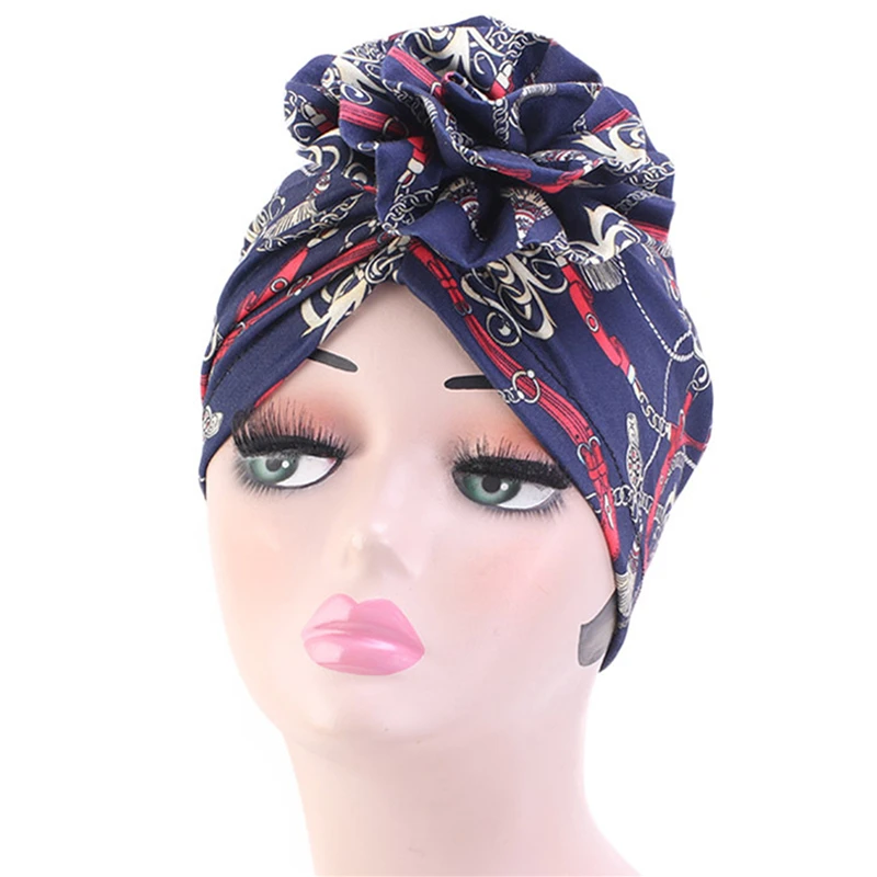 Этническая цепочка с принтом большого цветка головной платок капот женский тюрбан шляпа тюрбан Femme мусулман Индия шляпа исламский головной убор тюрбан