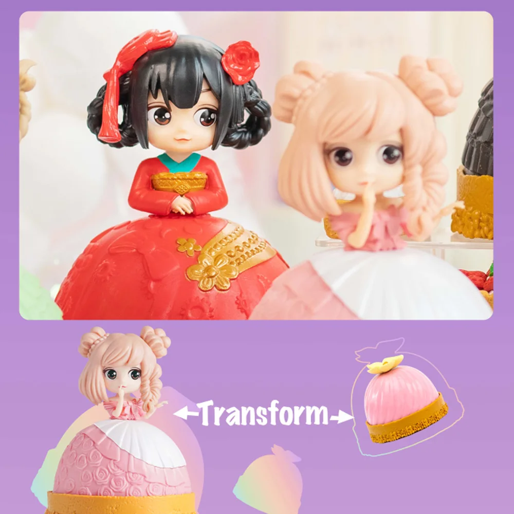 Это игрушка, которую можно превратить из торта в принцессу. Каждая кукла может превратиться в милую и милую принцессу. Переверните края, принцесса выйдет из торта.