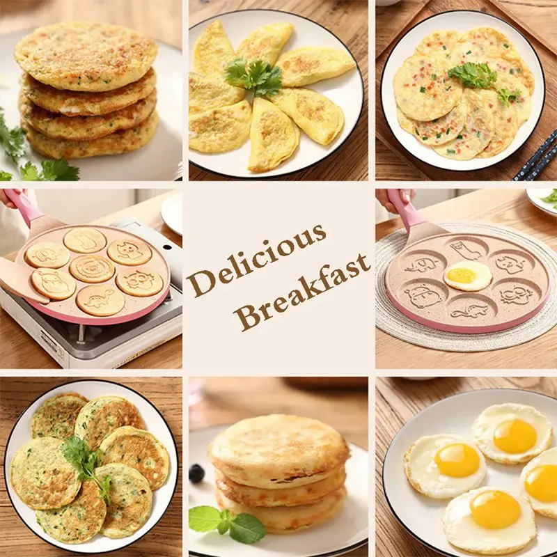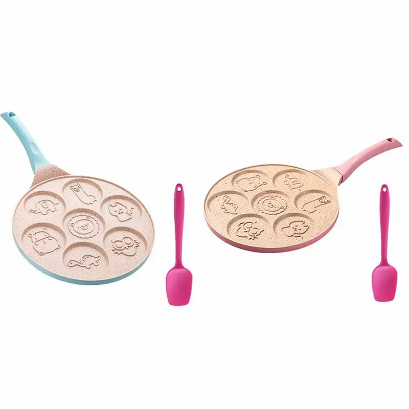 2 шт., 7 отверстий, форма для блинов, антипригарная сковорода для животных, для лица, блинное яйцо для стейка с силиконовым шпателем-розовый и синий