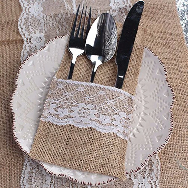 50 шт., набор ножей и вилок из натурального джута, набор столовых приборов, чехол для столовых приборов, держатель для мешковины и кружева, вечерние свадебные украшения, 21x11cm