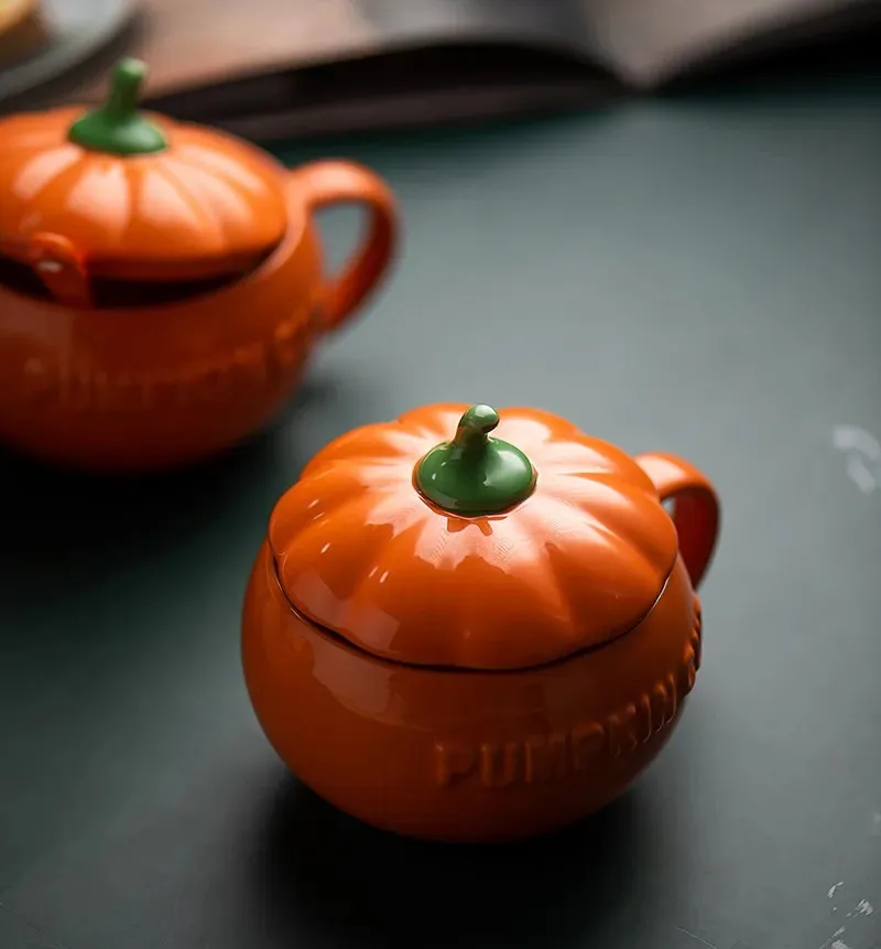 Керамическая чашка в форме тыквы, может использоваться как кофейная или суповая чашка