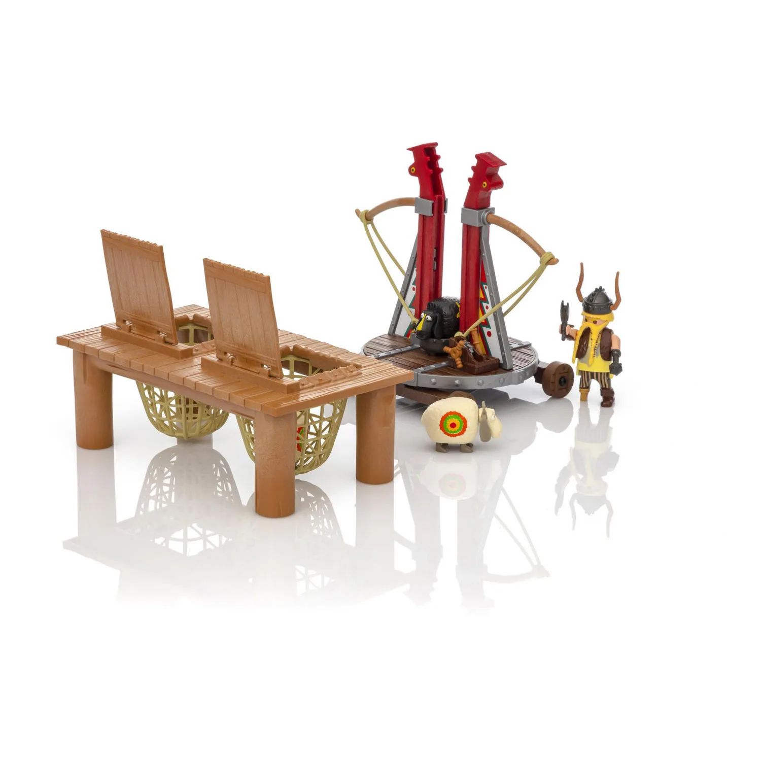 В наборе «Плеймобил»: фигурка викинга Плеваки, катапульта, 3 овцы.