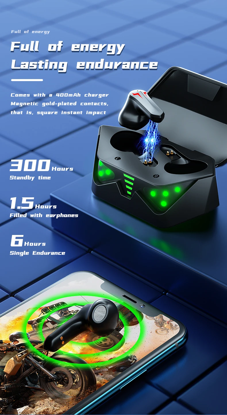 Наушники с одним ухом и аккумулятором емкостью 40 мА · ч автоматически заряжаются в зарядный чехол емкостью 400 мА · ч, обеспечивая 4-6 часов работы при полной зарядке.