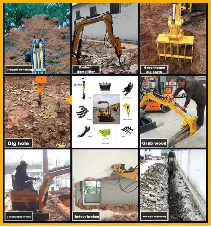 Экскаваторы снабжаются экскаваторами, дроблением, очисткой канав, бурением и бульдозером, благодаря чему их навесное оборудование быстро перемещается и таким образом его использование значительно увеличивается. Кроме того, они просты в эксплуатации и транспортировке и гибки для работы на узком участке.