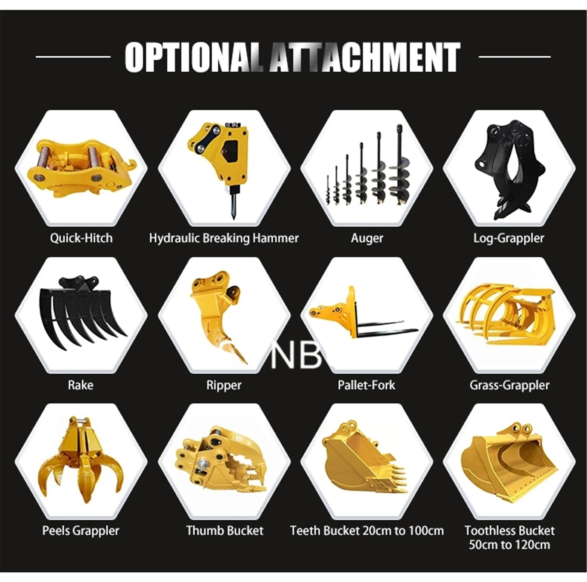 Экскаваторы могут оснащаться нескольким рабочим оборудованием, таким как быстрое сцепное устройство, захват журнала, рыхлитель, выравнивающий ковш, шнек и узкий ковш, а также дополнительной крышей, радиатора и других, чтобы удовлетворить ваши потребности.