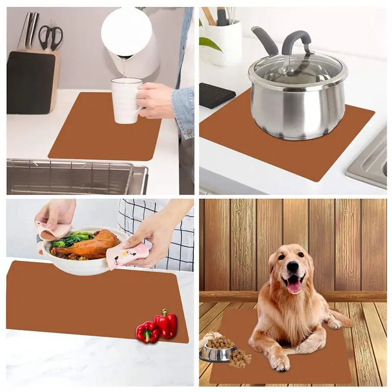 Силиконовый коврик для сушки посуды (упаковка из 2, серый) с 23,6 дюйма на 15,7 дюйма Экстра большой силиконовый антипригарный кондитерский коврик (кофе)