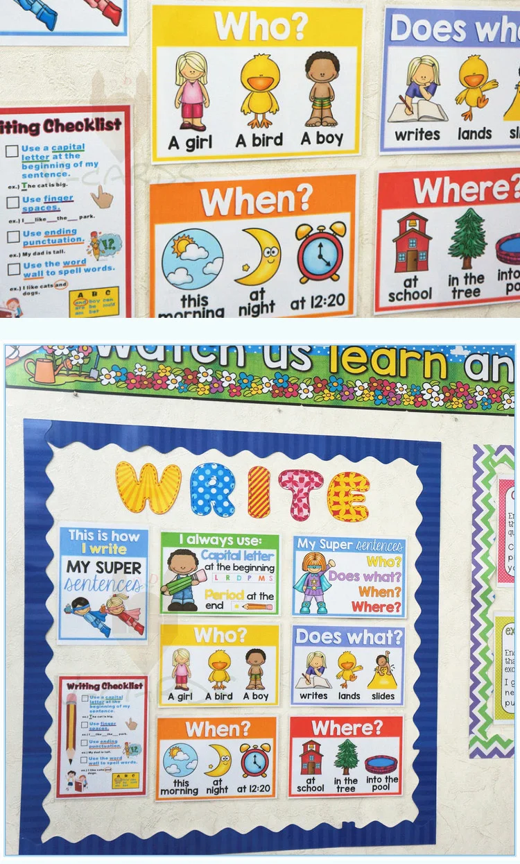 8 шт. А4 Размер развивающие плакаты как я пишу постер английские флэш-карты предложение для детей украшение для классной комнаты стикер на стену