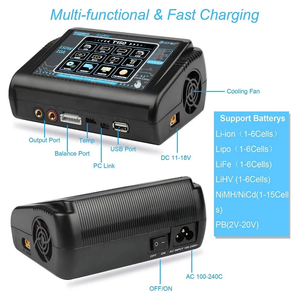 * Подходит для различных аккумуляторов. LiPo LiFe Lilon NiCd NiMh Pb и LiHV с высокой мощностью.
