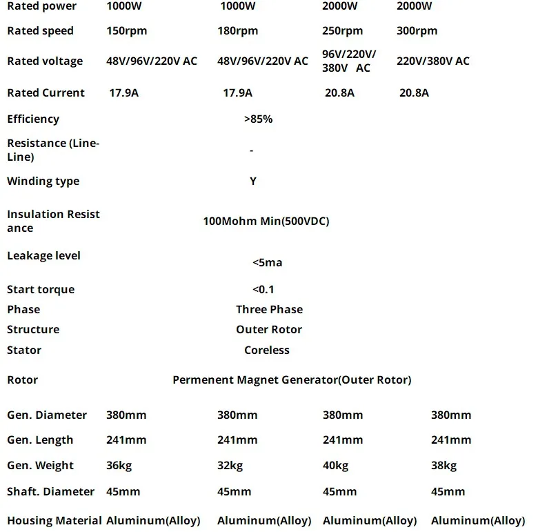 Низкая скорость 1 кВт 2 кВт 150 об/мин 300 об/мин 48 в 96 в 220 В 380 В постоянного тока Генератор постоянного магнита генератор без сердечника Maglev DIY l ветряная турбина