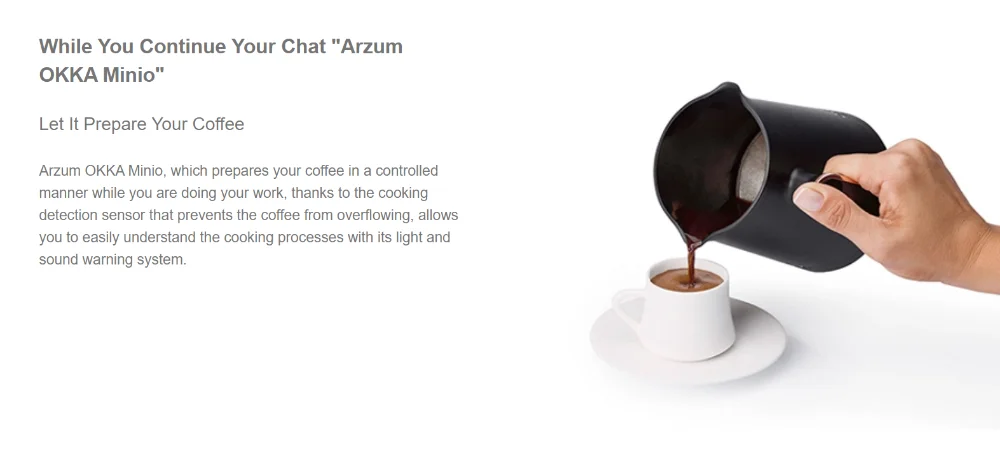 OKKA Minio Pro варит кофе в идеальной консистенции с медленным огнем и привносит пенный турецкий кофе в ваши приятные разговоры.