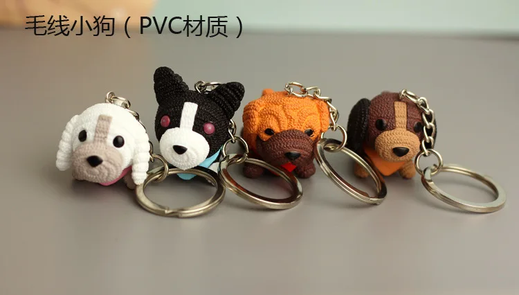 Маленькая подвеска на цепочке для ключей в виде собаки из шерсти (4 цвета)