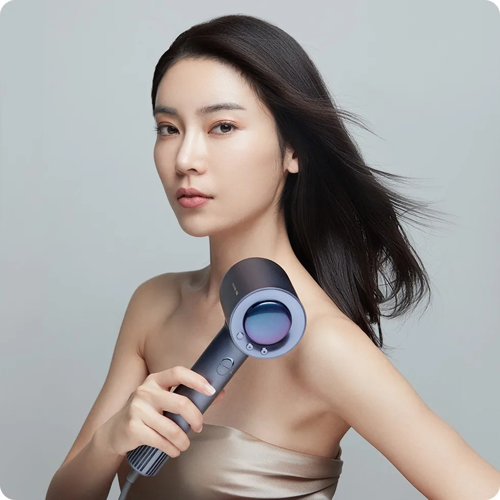 The new Zhibai hair dryer is equipped with an advanced V-Max motor with a diameter of 29mm, operating at a speed of 100'000 rpm, and this is 5-6-6 The impeller with 11 blades of super-light aluminum alloy every second runs 15 liters of air to cleanly blow moisture off the surface of the hair.