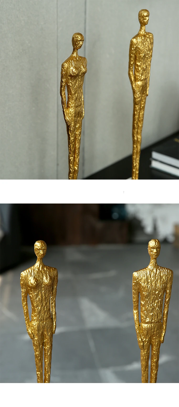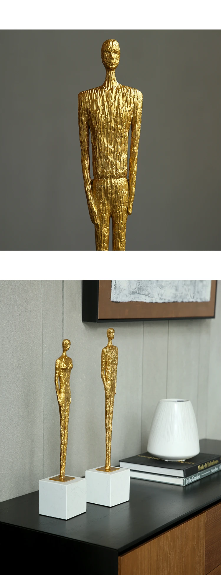 Абстрактные золотые мужские и женские металлические фигурки статуя украшения Белая Мраморная основа скульптура художественный Декор для дома гостиной офиса