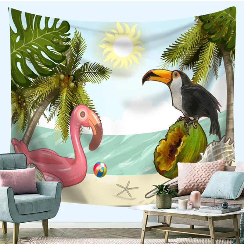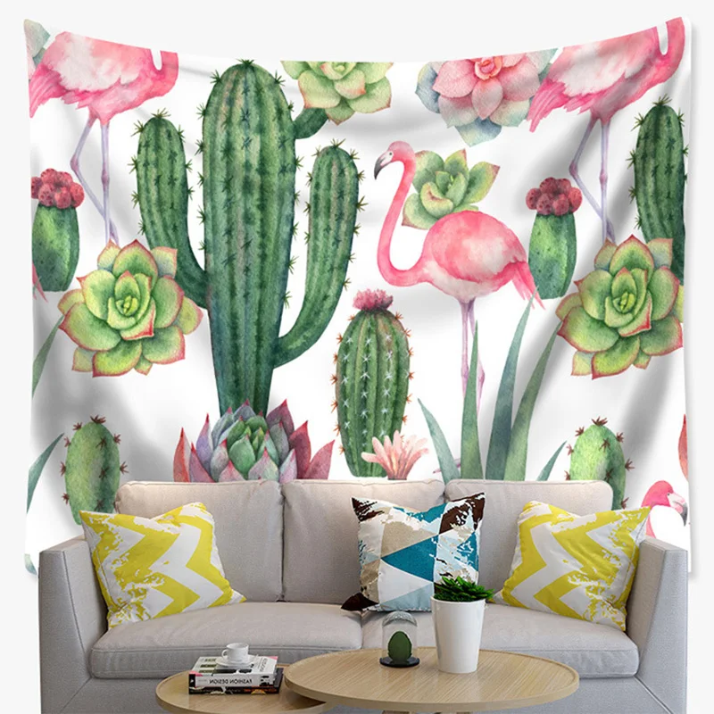 Гобелен фламинго, настенная ткань, Зеленый Кактус, настенные украшения