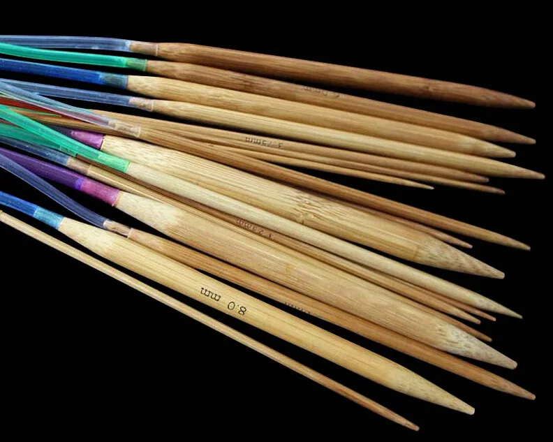 Обзор продукта18 шт разноцветные Круглые вязальные спицы из карбонизированного бамбука 40 см-120 см