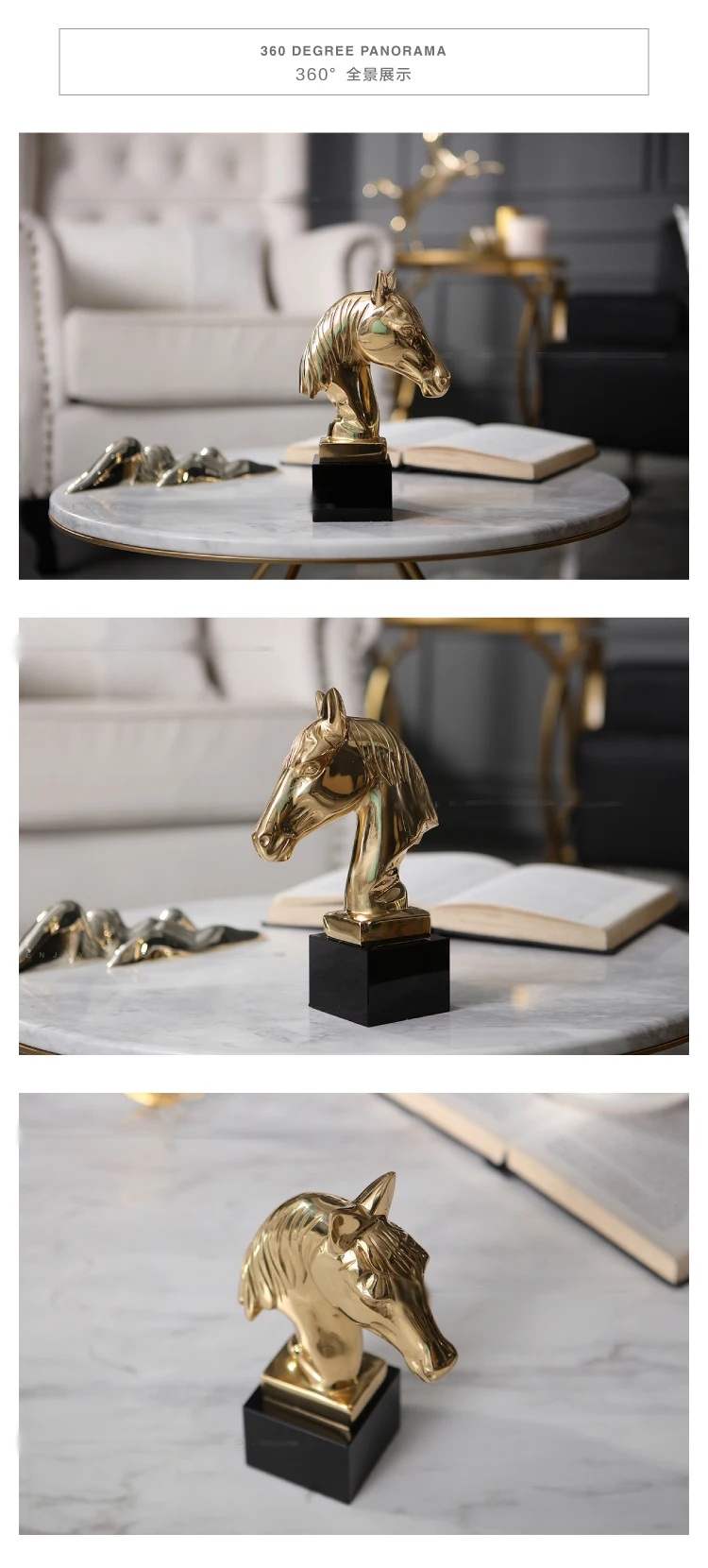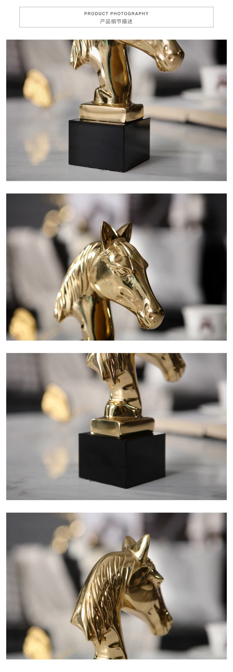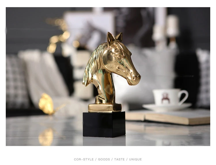 Аксессуары для домашнего декора Золотая голова лошади Статуэтка с черным кристаллом основа для украшение для гостиной предметы латунная Художественная Скульптура