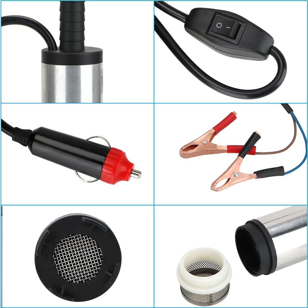 Входное напряжение: 12 В/24 В постоянного тока Мощность: 100 Вт Ток нагрузки: 5A(38 мм),7A(51 мм) Насос Диаметр: 38/51 мм Фильтр: съемный, несъемный Интерфейс: прикуриватель/Электрический зажим. Поток: 32 л/мин (51 мм диаметр),12 л/мин(Диаметр 38 мм. Диаметр выходного отверстия: 19/15 мм Скорость вращения: 8000р/мин Кабель Длина: 3,2/2,6 м Красная линия: Положительная Черная линия: Pegative Применение: дизель, керосин, вода. (Не для бензина)Посылка включает в себя: