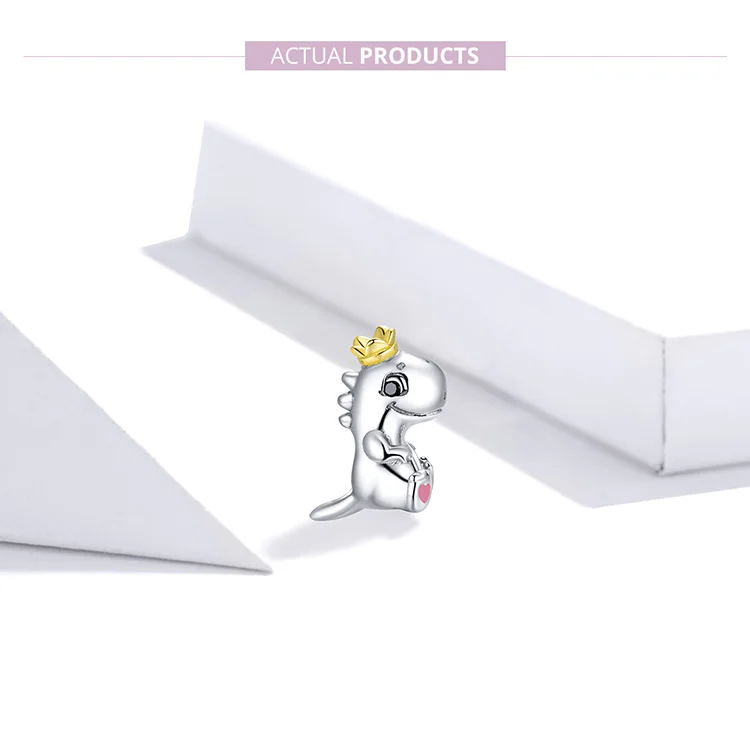 Маленький динозавр носит корону на голове, и мастерство создает симпатичную форму динозавра. S925 + покрытая платиной + покрытая золотом + паве установка CZ + эмаль процесс Размеры: 1,2*0,8 см