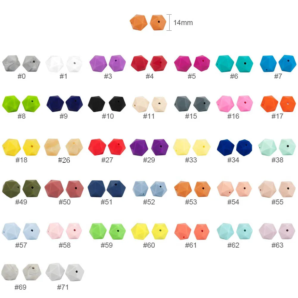 Милые силиконовые бусины, многоугольник, 14 мм, 500 шт., сенсорные Детские Прорезыватели, игрушка, BPA бесплатно, ожерелье для кормления, соска-подвеска