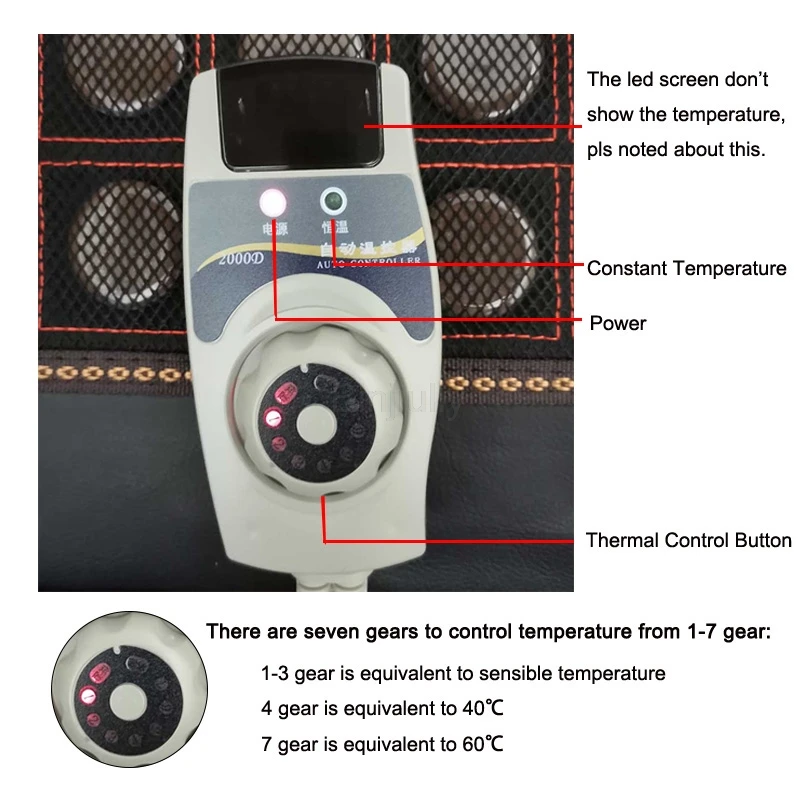Цвет:Как показано на картинке Размер продукта:50 см x 150 см Материал: высококачественная искусственная кожа +/Турмалин/Германит Область массажа: Полный корпус N.W./G.W. за штуку: 6Кг Примечание: напряжение 110 В не доступно. 220 В доступно