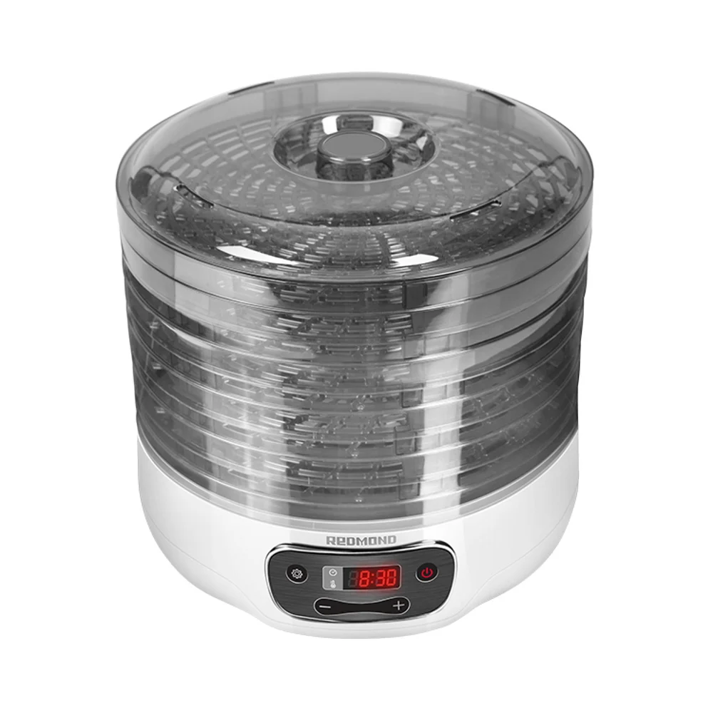 Электросушилка RFD-0158 – кухонный прибор, предназначенный для подготовки продуктов к длительному хранению. Устройство сушит овощи, фрукты, ягоды, травы, отлично подсушивает грибы, макаронные изделия, крупы и хлеб.