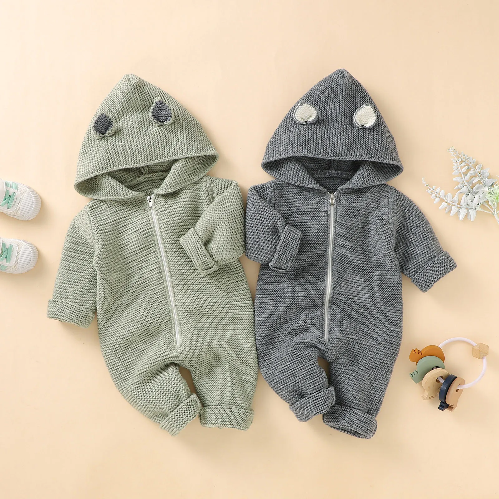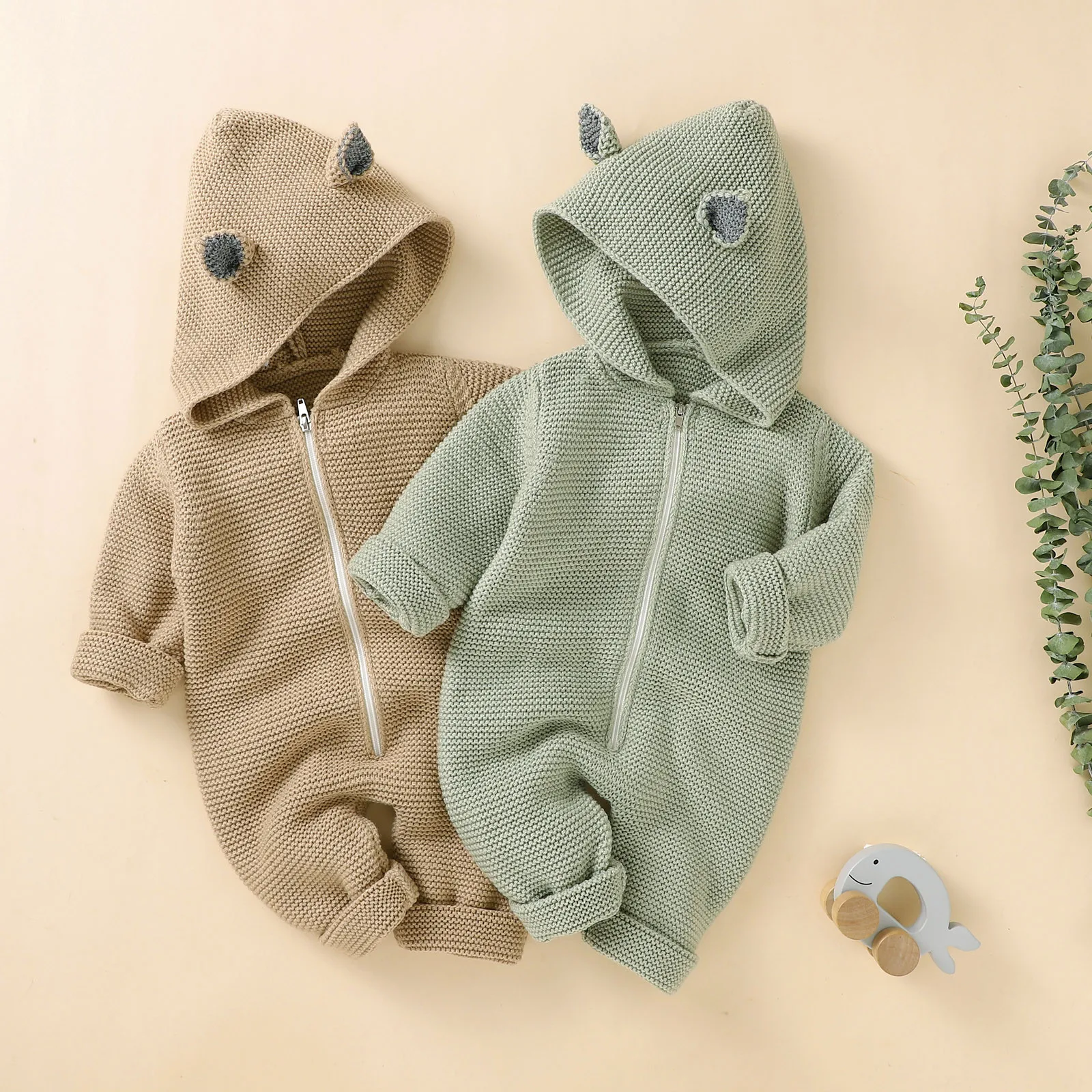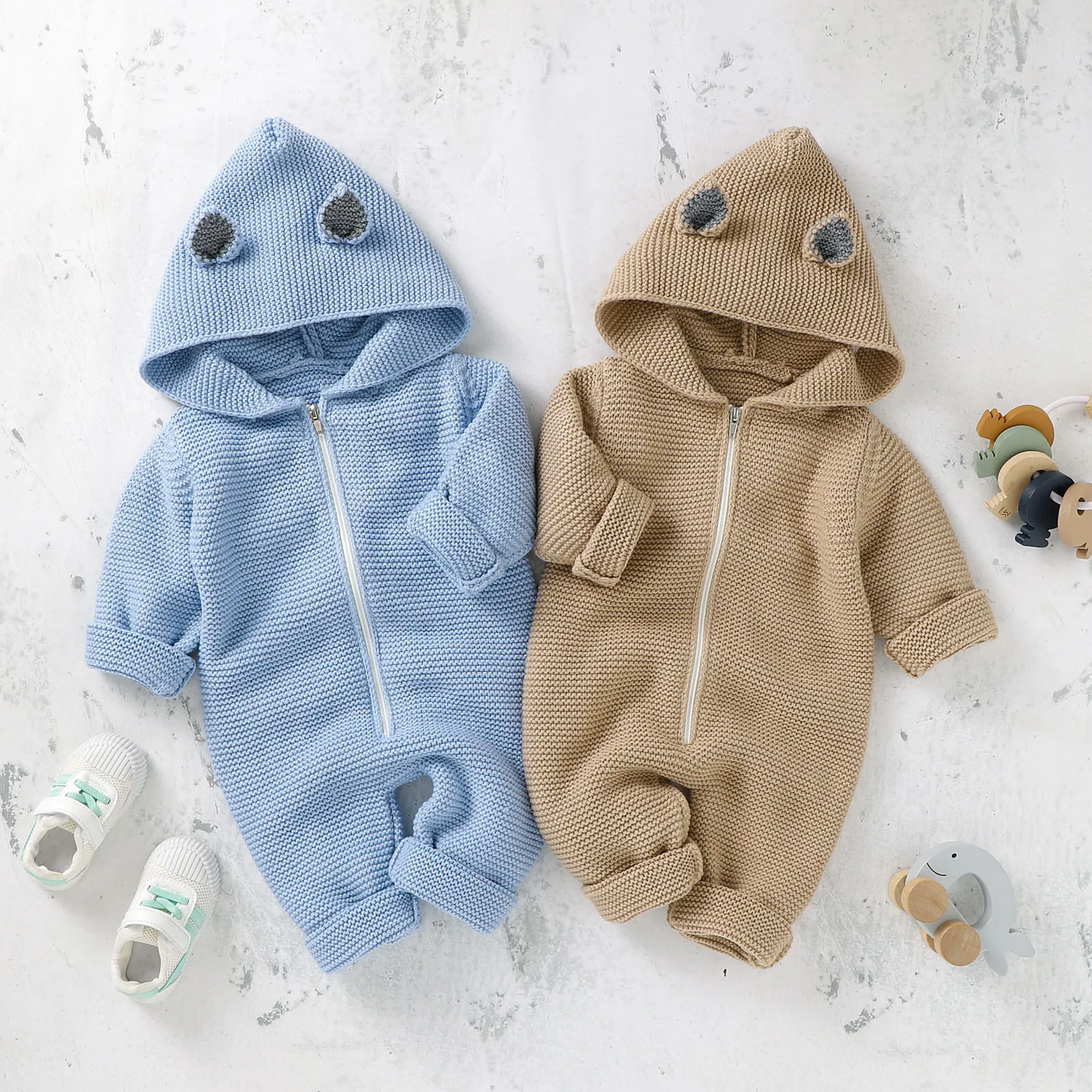 Детская одежда для новорожденных; Комбинезон для новорожденных девочек и мальчиков; Зимняя теплая вязаная верхняя одежда; Свитер; Комбинезон с капюшоном; Комбинезон для маленьких девочек