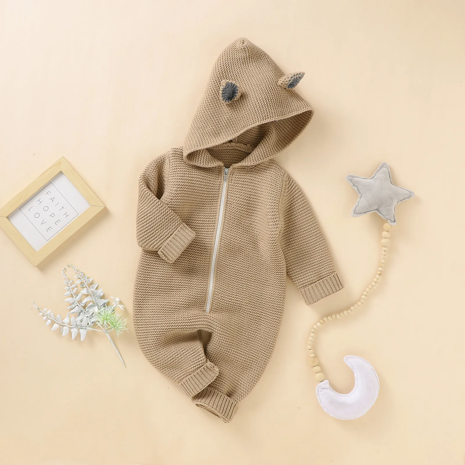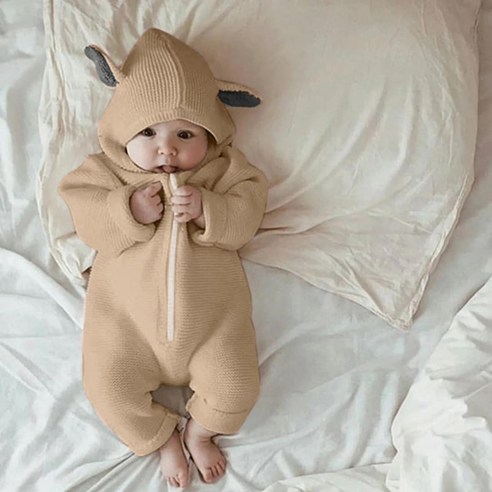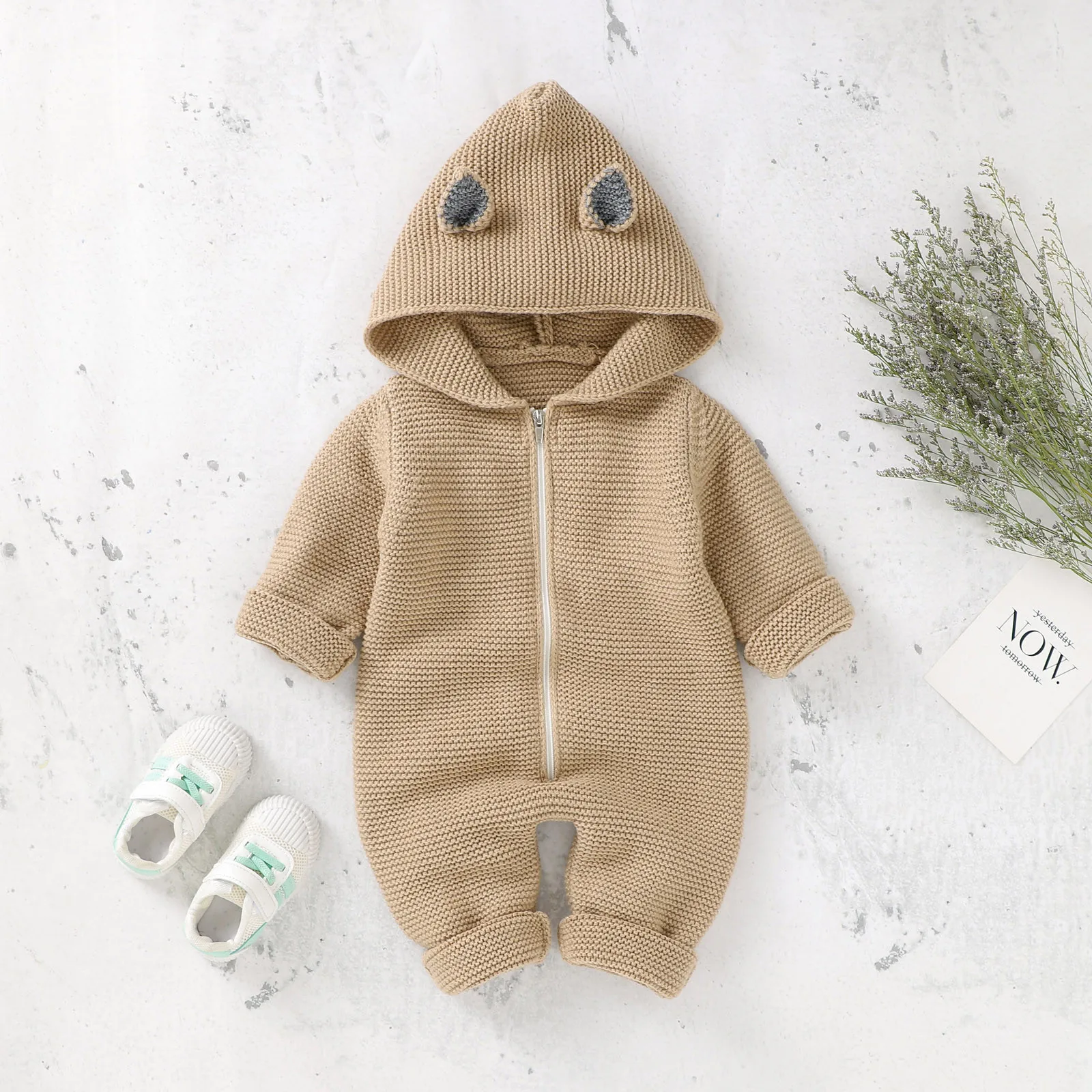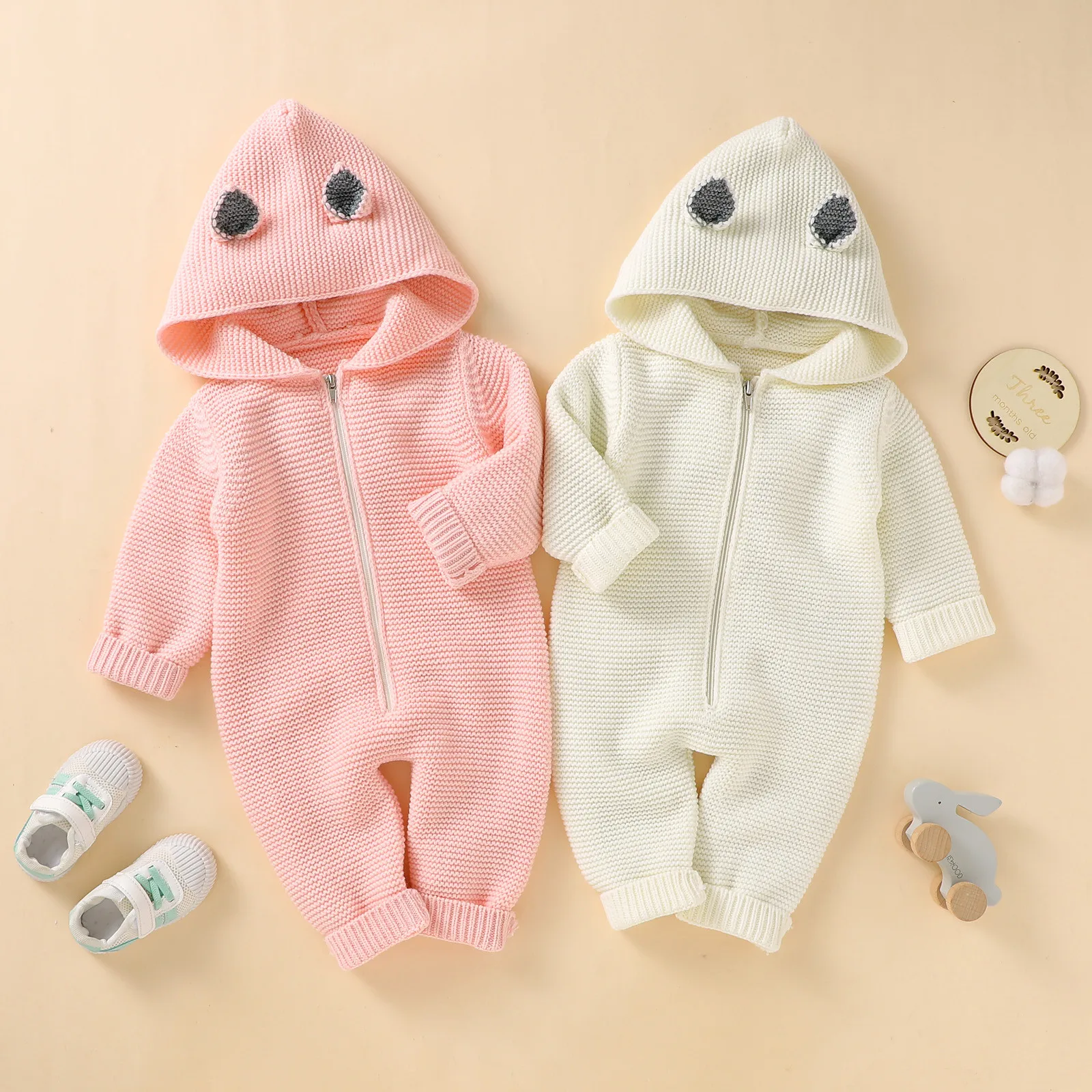 Детская одежда для новорожденных; Комбинезон для новорожденных девочек и мальчиков; Зимняя теплая вязаная верхняя одежда; Свитер; Комбинезон с капюшоном; Комбинезон для маленьких девочек