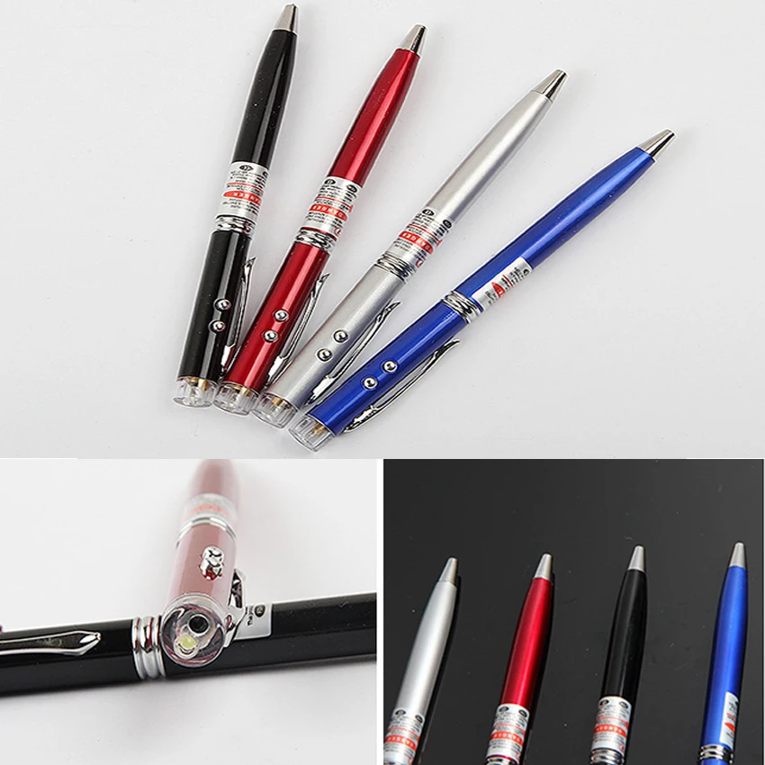 3 in 1 red laser pointer with LED light and ballpoint pen.