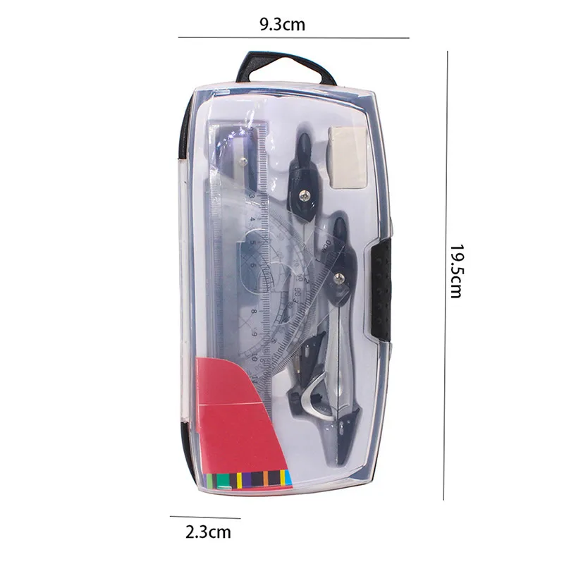 Размеры: коробка Длина * Ширина: 19,5*9,3 см, чертежные циркули Длина: 11,5 см допустима погрешность около 1 см