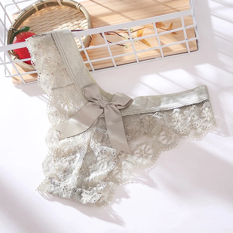* Сексуальное кружевное нижнее белье: Форма Т-образных брюк, кружевной вырез и украшение бантом, пикантное и милое.