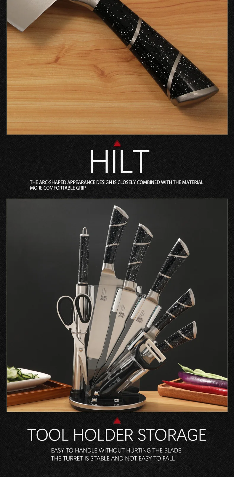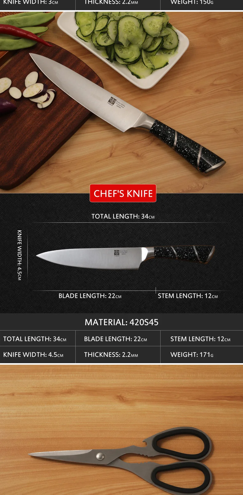 Кухонный набор из 8 ножей из нержавеющей стали-Универсальный помощник на кухне.Стальные аксессуары не боятся твердых продуктов и большого давления.Они могут выдерживать механическое повреждение, шок, совместимость с другими металлическими устройствами и автоматическую стирку.Посылка включает:5 ''нож = 1 шт. 8'' нож для хлеба = 1 шт. 8 ''нож для поваров = 1 шт. 3,5'' нож для очистки овощей = 1 шт.7 ''Кливер = 1 шт. точилка = 1 шт. ножницы = 1 шт. Овощечистка = 1 шт.Добро пожаловать в мой магазин, если вам нравится этот товар, пожалуйста, добавьте его в ваш"Wish LisT", Если вам нравится наш магазин, пожалуйста, добавьте его в ваш"Список магазинов".