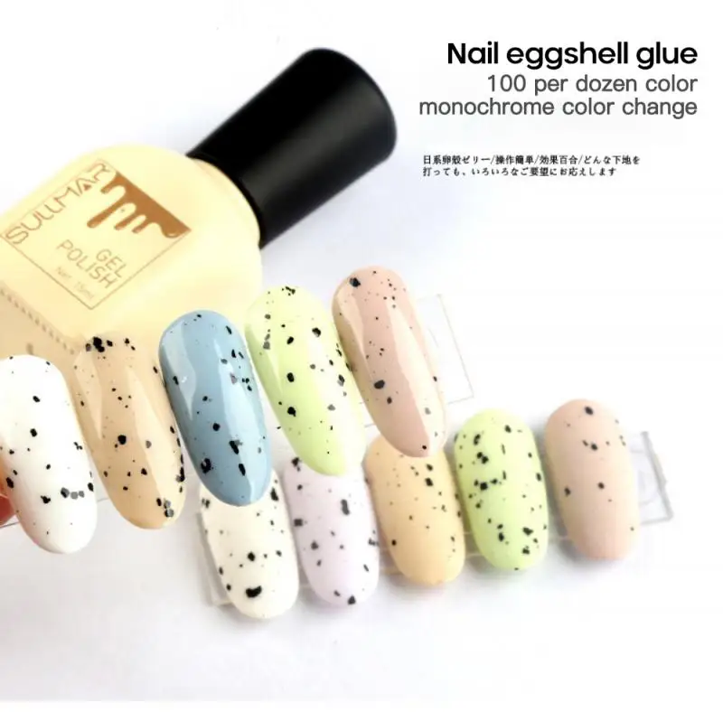 Художественный японский клей для ногтей в виде яичной скорлупы с разными цветами и стилями фона.