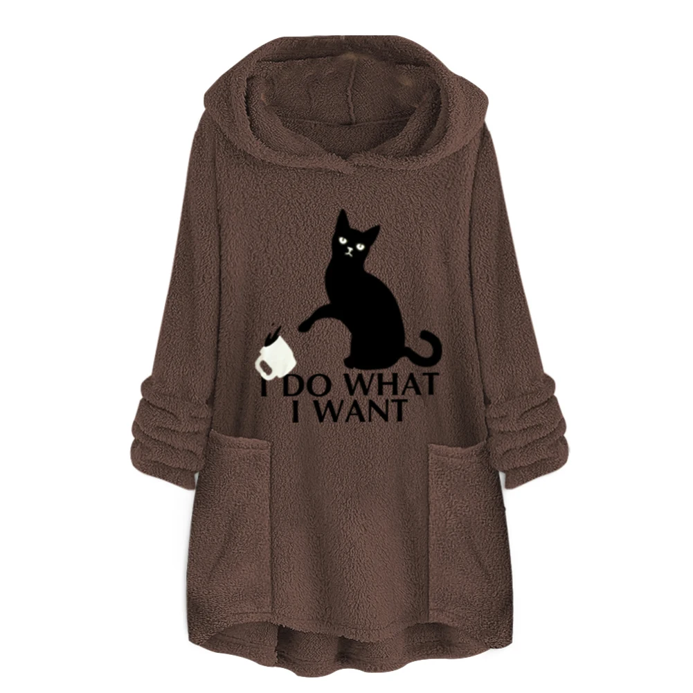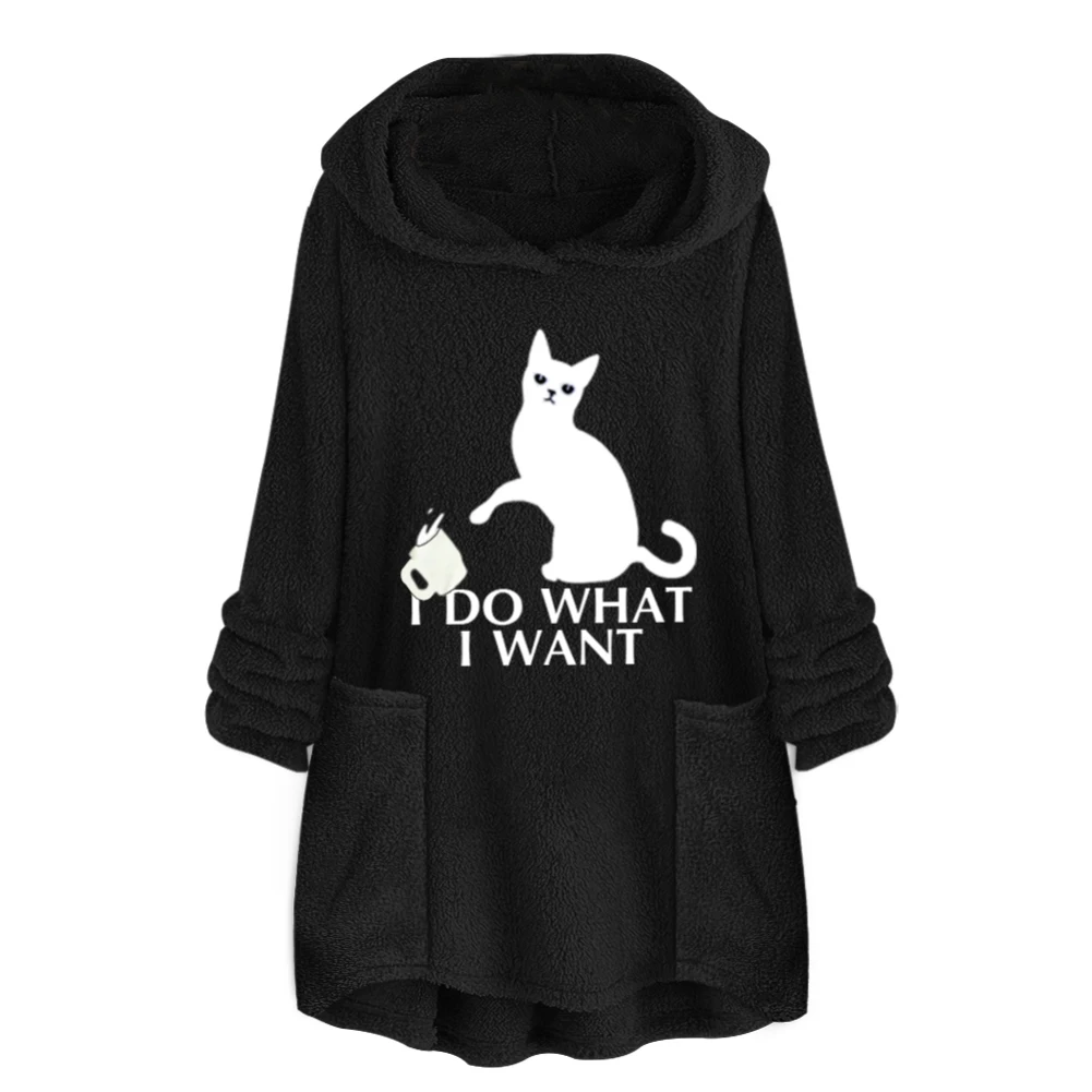 Женская Осенняя однотонная толстовка с капюшоном средней длины с асимметричным подолом и карманами